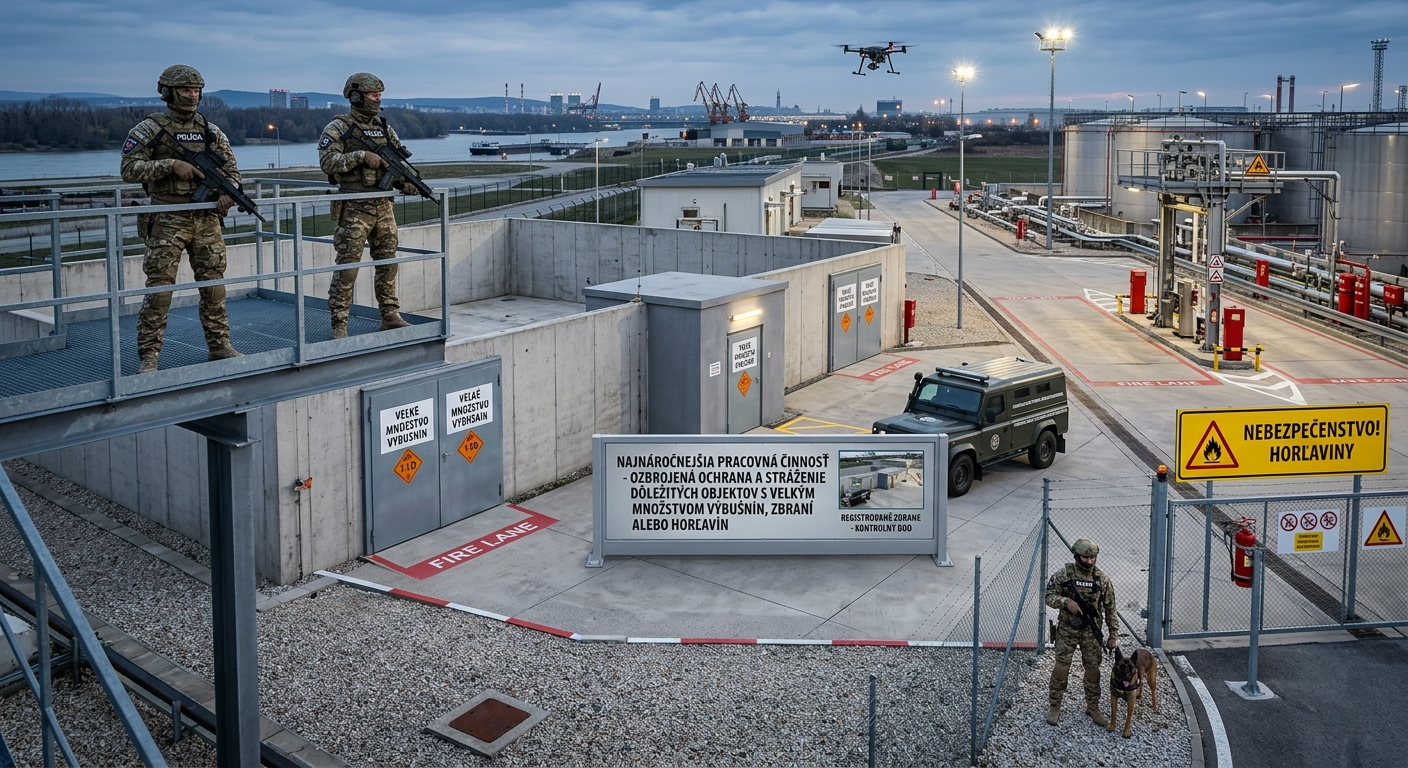 Najnáročnejšia pracovná činnosť: Ozbrojená ochrana a stráženie dôležitých objektov s veľkým množstvom výbušnín, zbraní alebo horľavín.